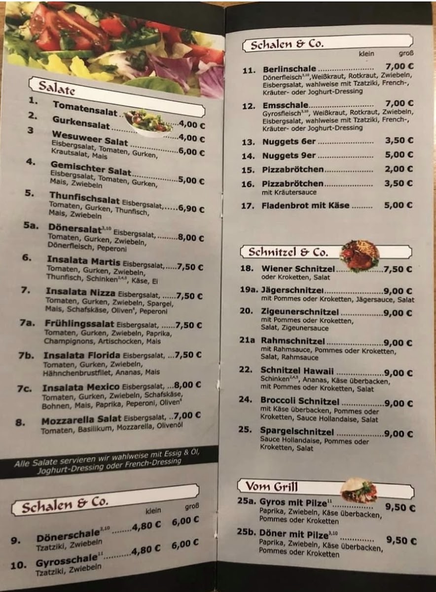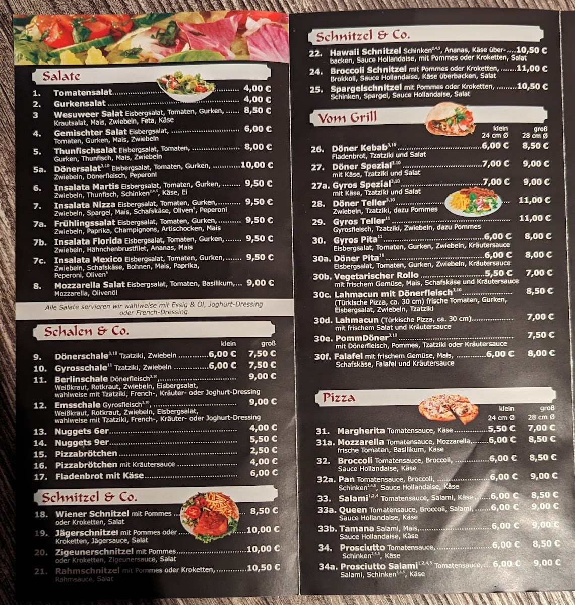 Welcome to Marti's, a gem located at Wesuweer Hauptstraße 57, in the heart of Haren (Ems), Germany. This charming restaurant specializes in delicious and authentic dishes, showcased through a menu rich in flavors. Diners rave about the Döner, particularly the Döner platter served with fries and salad — a delightful combination praised for its excellent value and quality. Every bite speaks of carefully crafted, homemade bread and succulent meats, ensuring a memorable dining experience.